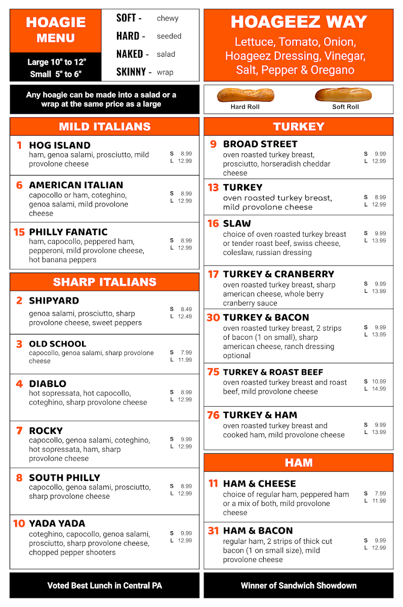 Patrons like Kurt and Lisa appreciate the distinct Philadelphia-style sandwiches, emphasizing the generous portions and exceptional flavor that keep them coming back. Whether you're in the mood for the Yada Yada or a classic turkey and provolone, HOAGEEZ promises an unforgettable dining experience, one that's hard to resist and impossible to forget.